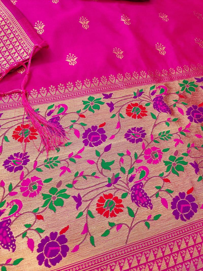 | Product Name | Pink Soft Banarasi Silk Pure Zari Woven Design Dress Material | |