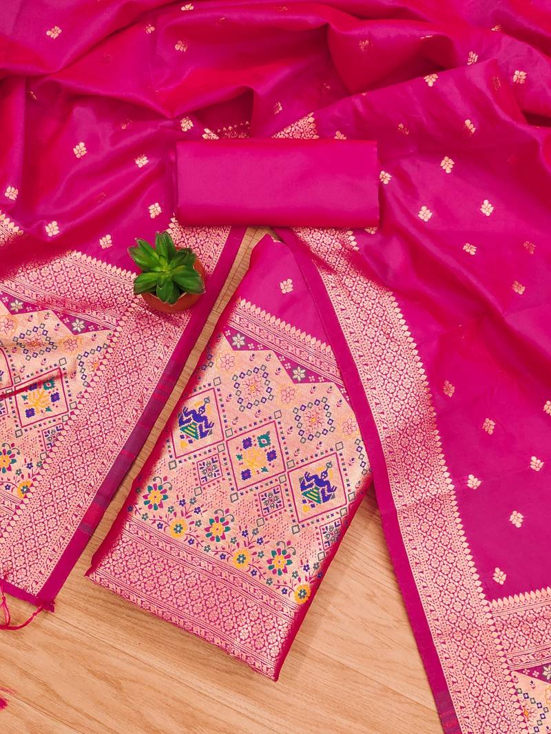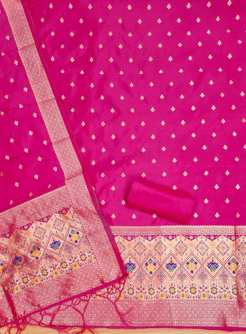Pink soft banarasi silk pure zari woven design dress material unstitched