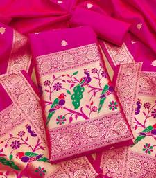 Pink soft banarasi silk pure zari woven design dress material unstitched