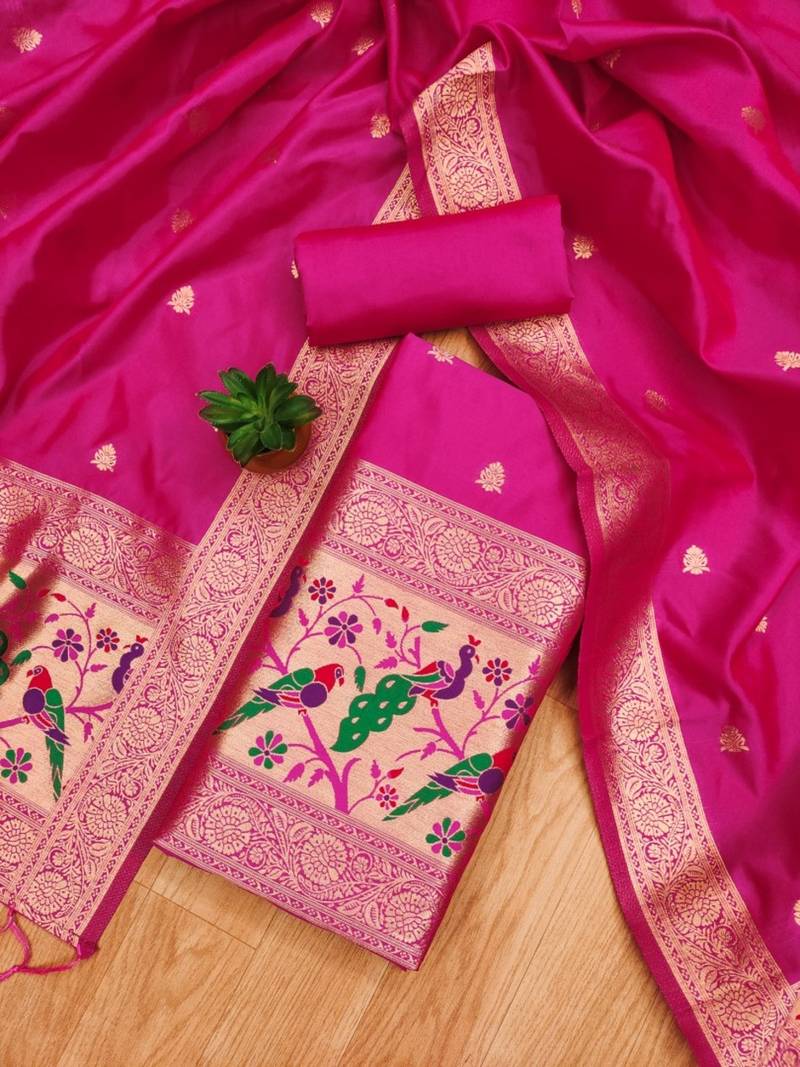 | Product Name | Pink Soft Banarasi Silk Pure Zari Woven Design Dress Material | |