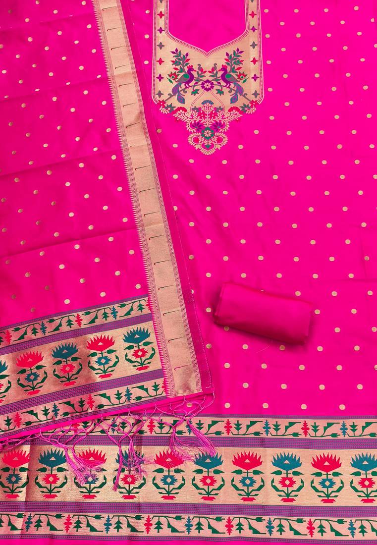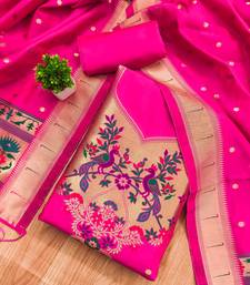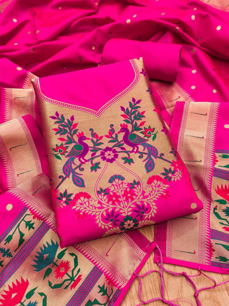 Pink soft banarasi silk pure zari woven design dress material unstitched