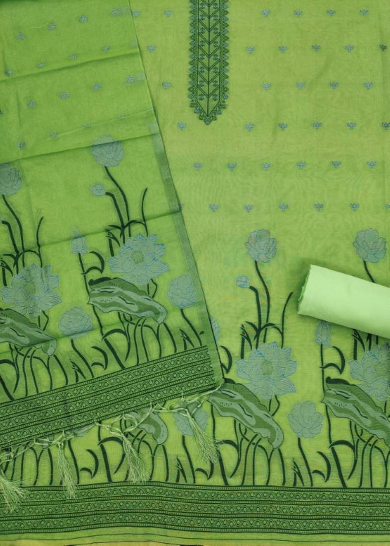 | Product Description | This Pista Muga Cotton Jamdani Weaving 3 Piece Dress Material Set Brings A Soft, Refreshing Charm To Your Ethnic Wardrobe. The Top Features Elegant Jamdani Weaving In Green And Grey Tones, Arranged In A Neat Vertical Pattern That Adds A Touch Of Sophistication. The Dupatta Carries Artistic Floral Motifs With Traditional Jamdani Borders, Offering A Graceful And Beautifully Detailed Drape. A Matching Plain Bottom Fabric Completes The Unstitched Set, Giving You The Freedom To Customize The Fit And Style As Per Your Comfort. Ideal For Casual Functions, Festive Gatherings, Or Daytime Outings, This Pista Muga Cotton Set Blends Serene Color, Fine Craftsmanship, And Breathable Comfort Perfect For Effortlessly Graceful Ethnic Styling. |