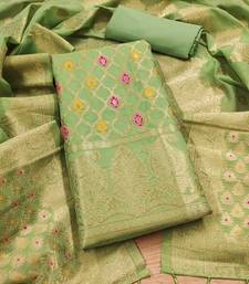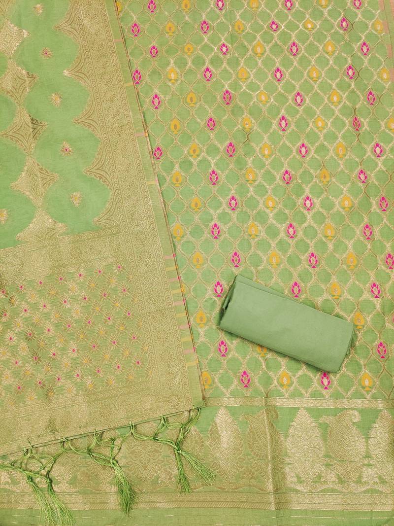 Unstitched pista chanderi cotton 3-piece set with zari work