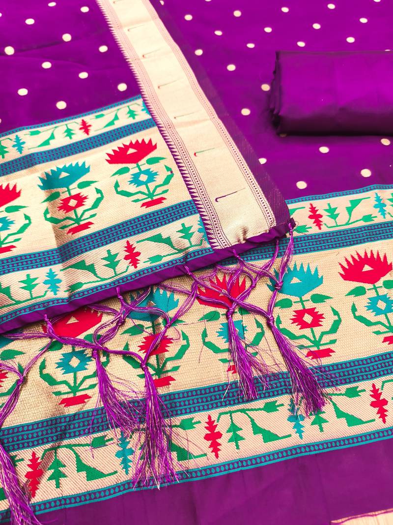 | Product Name | Purple Soft Banarasi Silk Pure Zari Woven Design Dress Material | |