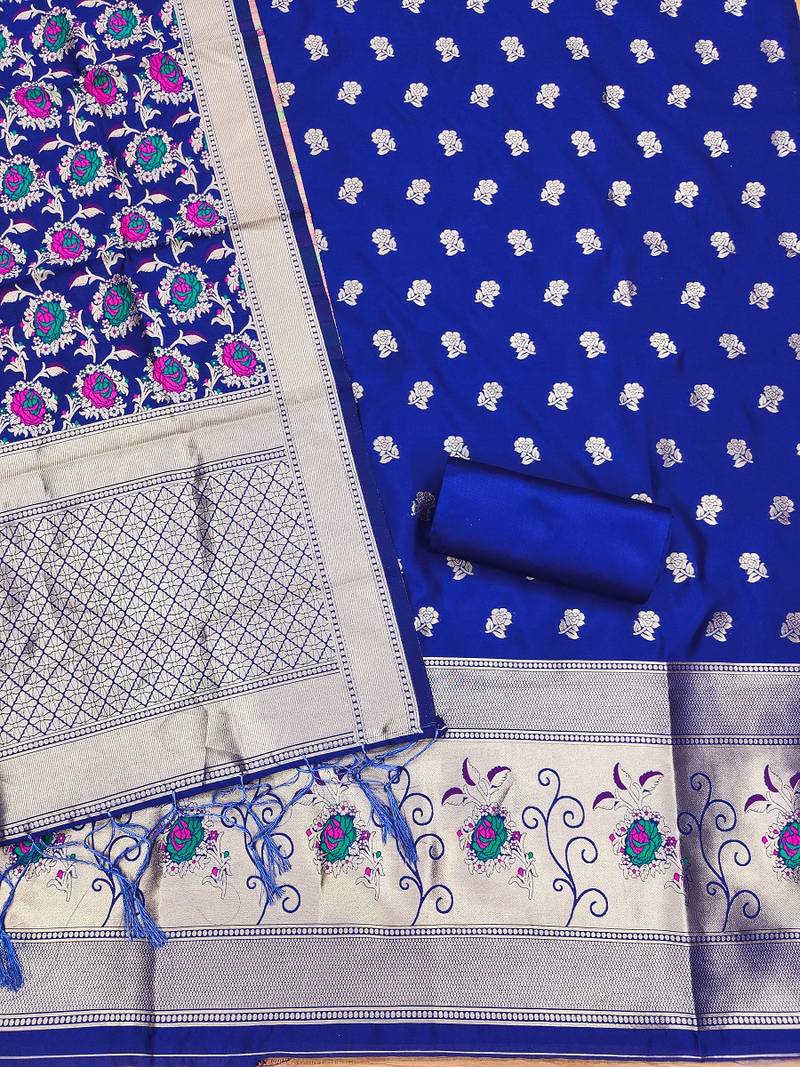 | Product Name | Royal Blue Soft Banarasi Silk Pure Zari Woven Design Dress Material | |
