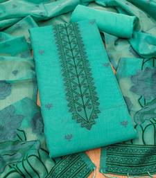 Sea green muga cotton jamdani weaving 3 piece dress material set unstitched