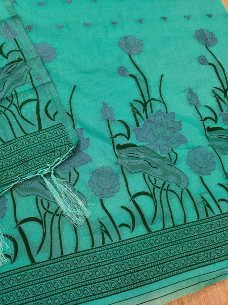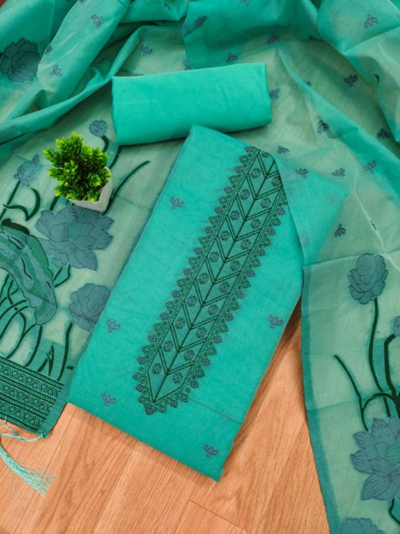 | Product Name | Sea Green Muga Cotton Jamdani Weaving 3 Piece Dress Material Set | |