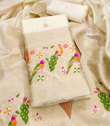 White soft banarasi silk pure zari woven design dress material unstitched