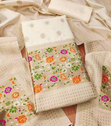 White soft banarasi silk pure zari woven design dress material unstitched