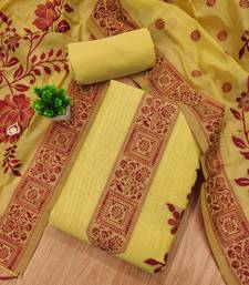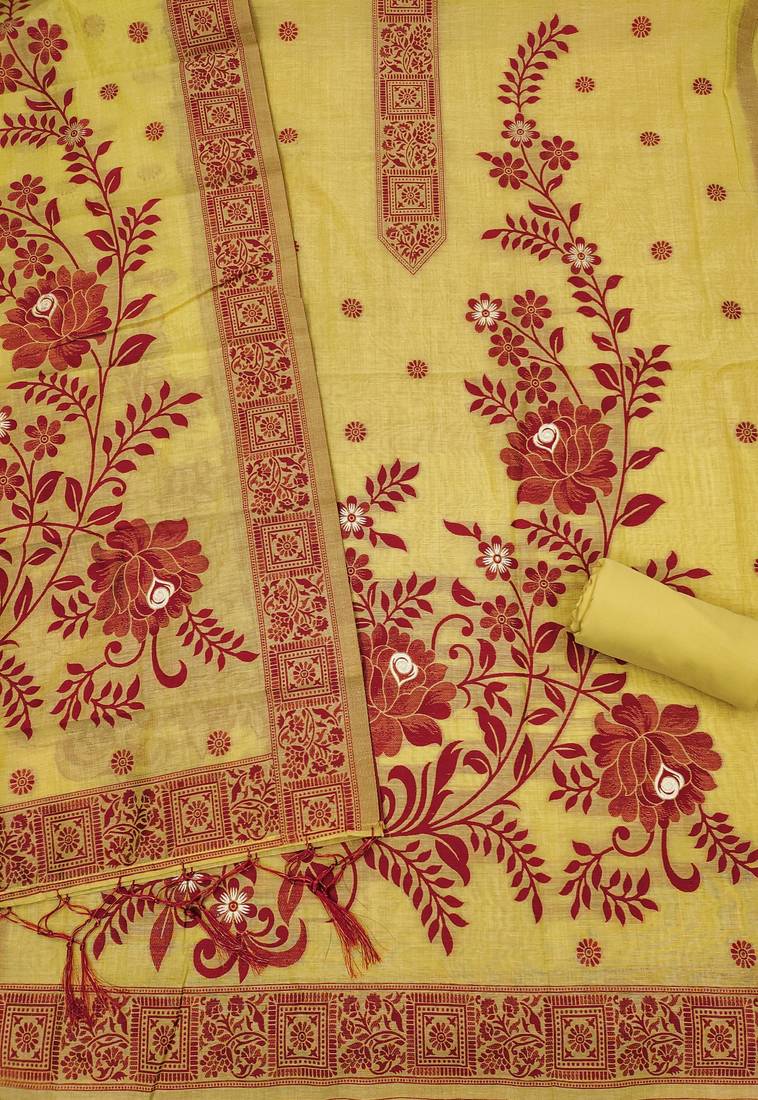 Yellow jamdani banarasi weaving dress material 3pcs for women unstitched
