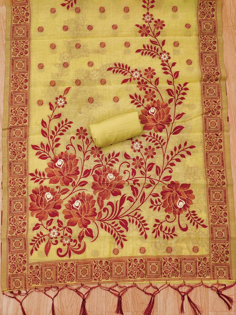 | Product Name | Yellow Jamdani Banarasi Weaving Dress Material 3pcs For Women | |