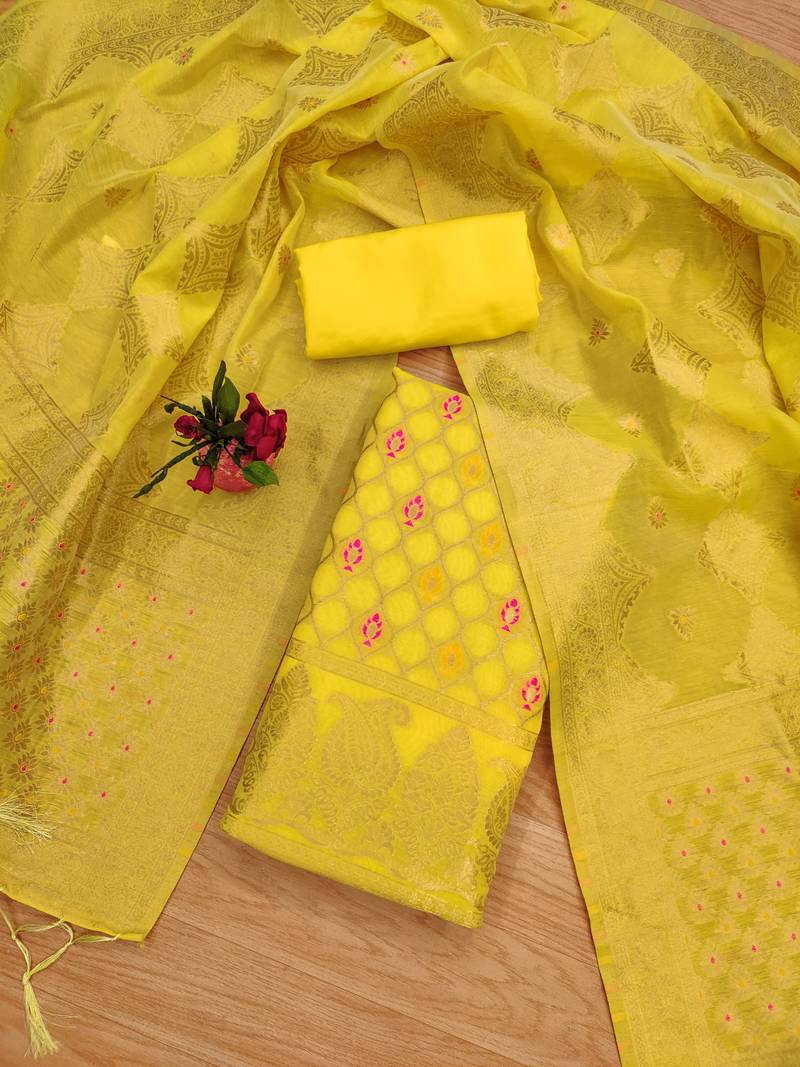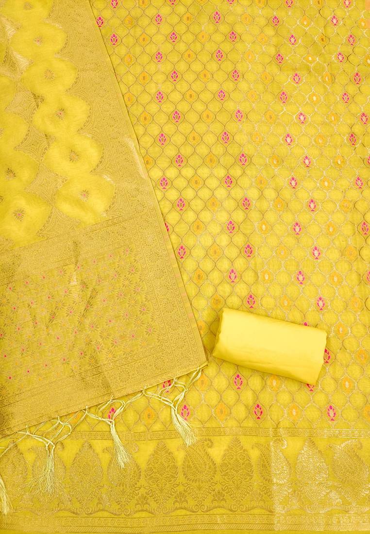 | Product Name | Unstitched Yellow Chanderi Cotton 3 Piece Set With Zari Work | |