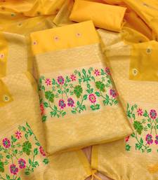 Yellow soft banarasi silk pure zari woven design dress material unstitched
