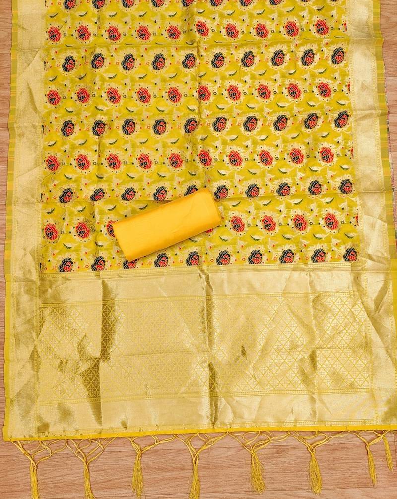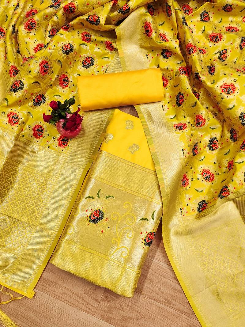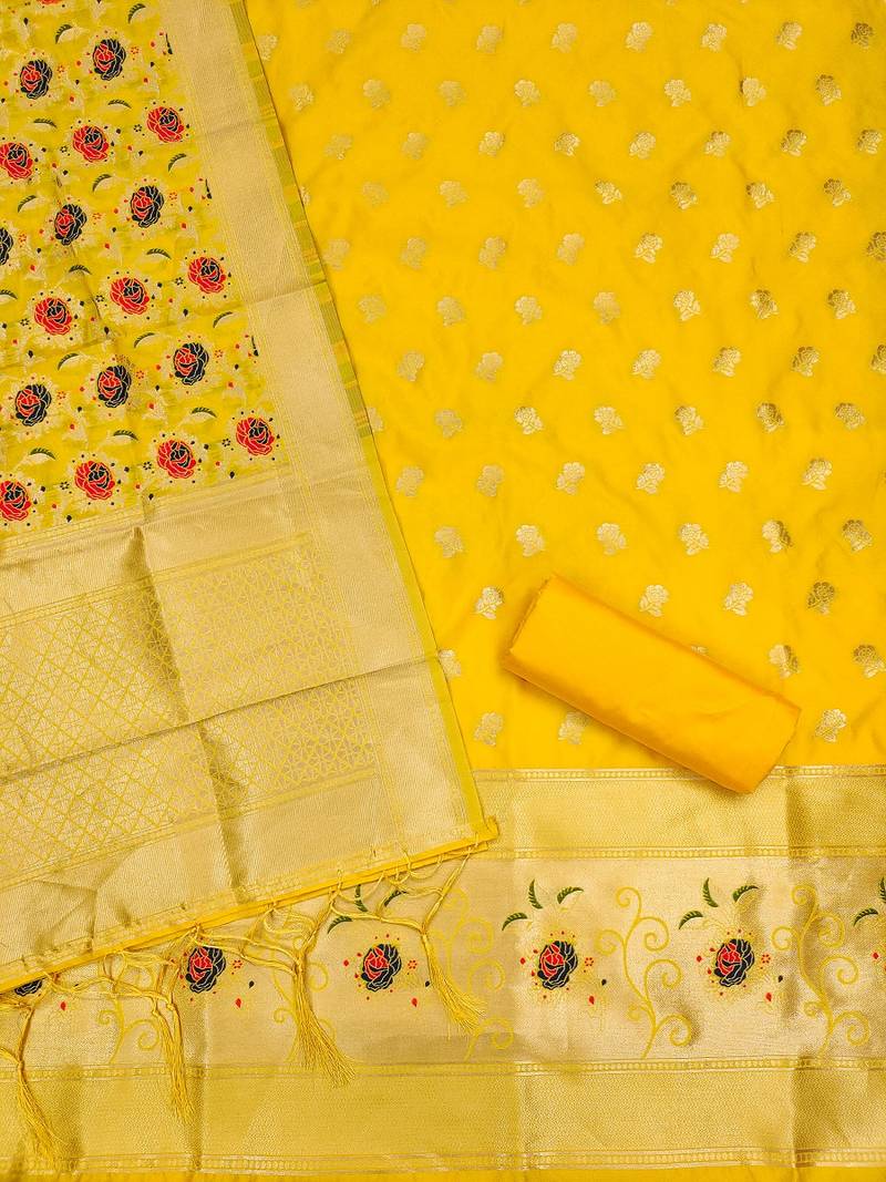 | Product Name | Yellow Soft Banarasi Silk Pure Zari Woven Design Dress Material | |