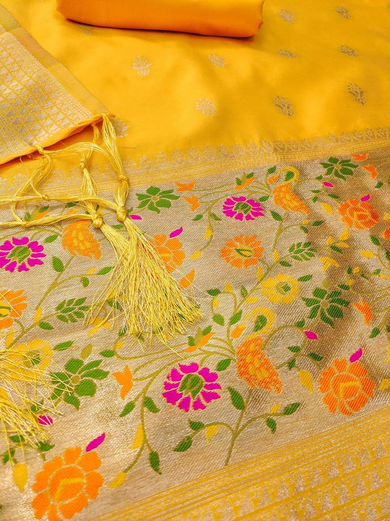 Product Name Yellow Soft Banarasi Silk Pure Zari Woven Design Dress Material