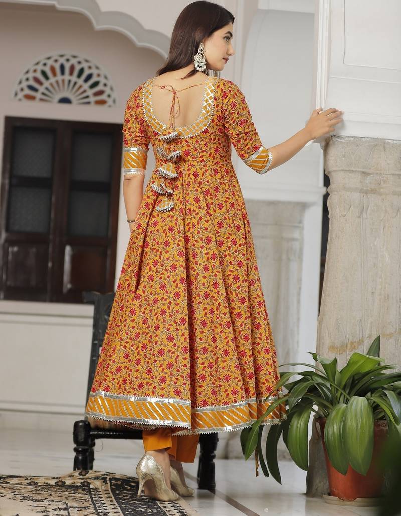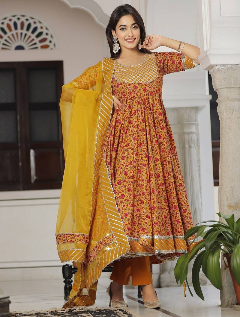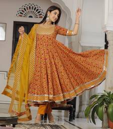 | Product Description | Quality Soft Cotton Women Anarkali, Fabric : Cotton, Color :Mustard Yellow |