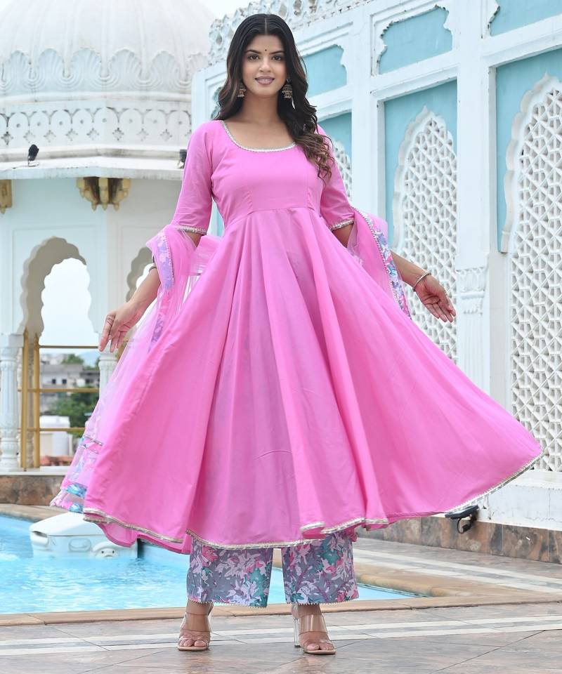 | Product Description | Quality Soft Cotton Women Anarkali Set, Fabric : Cotton, Color : Pink |