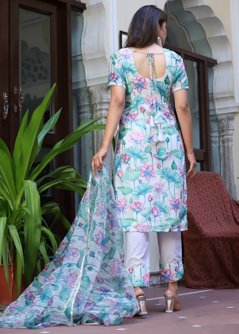 | Product Name | Pink Lotus Chanderi White Suit Set | |