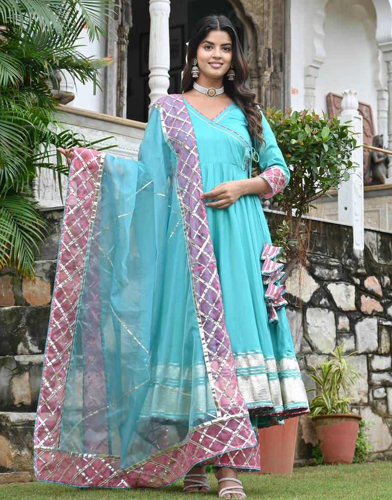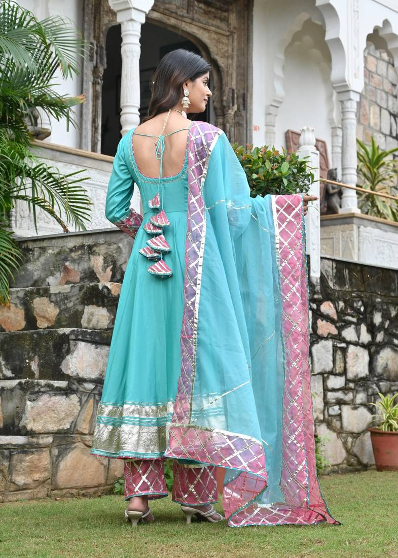 | Product Name | Pinkist Peach With English Blue Anarkali | |
