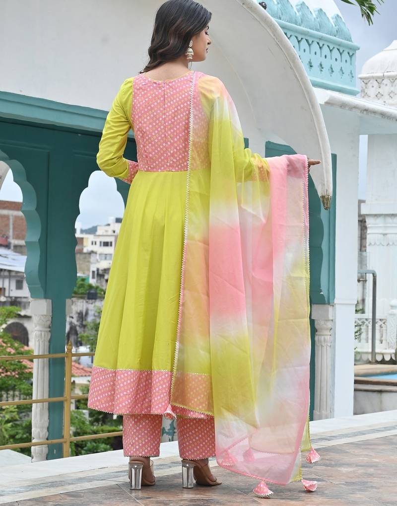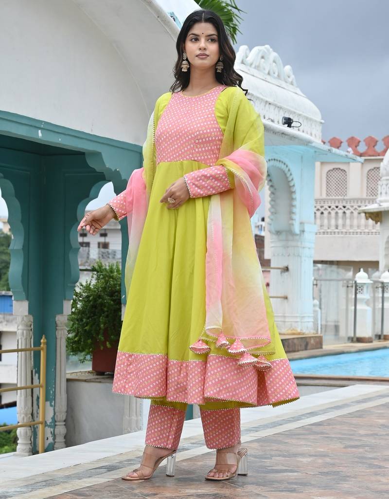 | Product Description | Quality Soft Cotton Women Anarkali Set, Fabric : Cotton, Color : Neon Green |