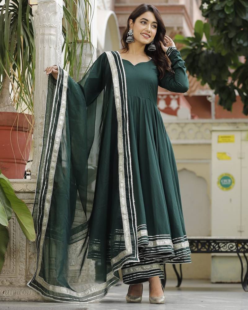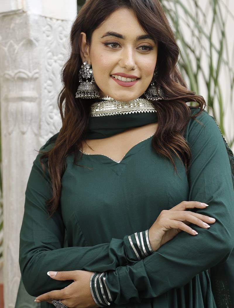 Short hunter green anarkali set stitched
