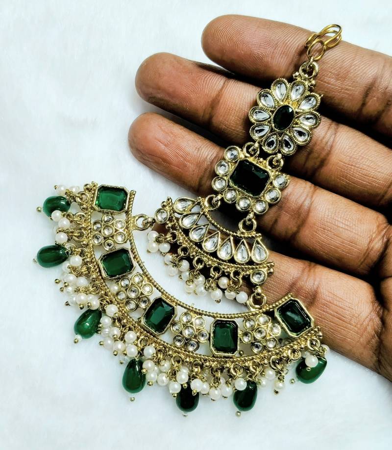 Product Name Green Maang Tikka Kundan