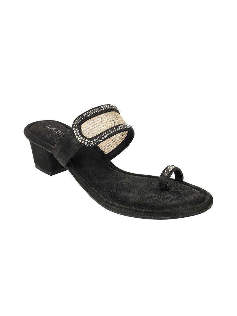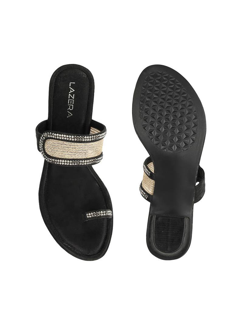 • Elevate Your Festive And Party Looks With Lazera’s Antique Gold Block Heel Toe Ring Sandals