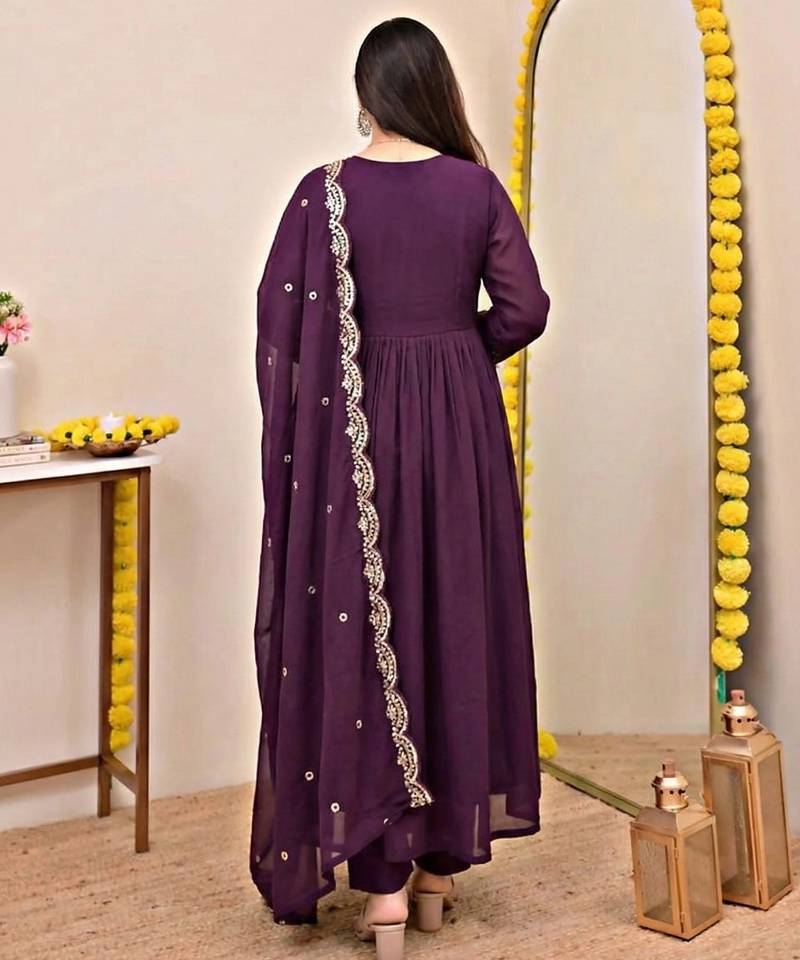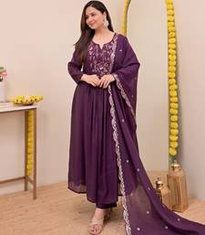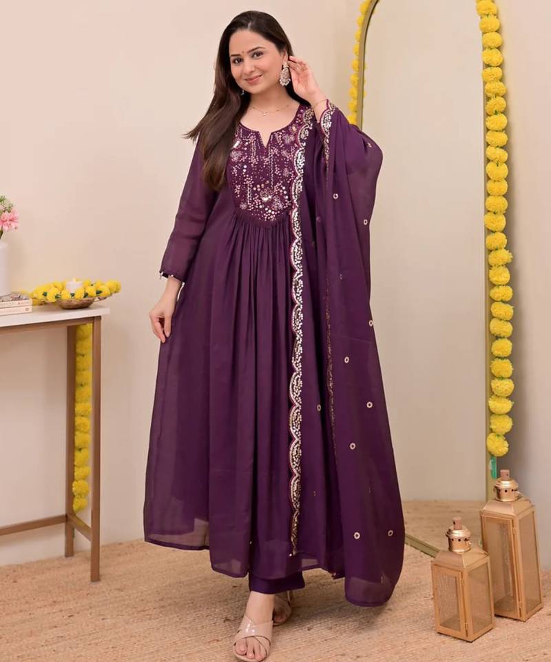 This Salwar Suit Set With Dupatta Is Elevated By A Matching Purple Embroidered Chanderi Dupatta, Featuring Delicate Floral Motifs That Add A Layer Of Sophisticated Grace To Your Look. Perfect For Weddings And Formal Gatherings, This Silk Kurta Set For Women Blends The Heritage Of Ethnic Kurtis With The Sleek Appeal Of A Pakistani Suit. Far More Luxurious Than Standard Cotton Kurtis, This Ensemble Functions As A Complete Women's Indian Salwar Kameez Set, Ensuring You Shine In A High End Designer Kurta Sets Silhouette. Experience The Perfect Harmony Of Style And Comfort With This Stunning Party Wear Kurta Set