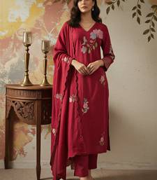 Make A Grand Entrance With Our Women's Chanderi Silk Sequin Embroidery V Neck Red Kurta Pant Set, A Masterpiece Designed For Those Who Love High End Designer Kurta Sets. This Vibrant Readymade Suit Combines The Regal Texture Of Chanderi Silk With A Striking Scarlet Hue, Offering A Bold Alternative To A Standard Anarkali Suit Or Pakistani Suit. The Kurta Features A Flattering V Neckline Adorned With Meticulous Sequin Work, Perfect For Those Searching For Heavy Work Kurtis That Exude Luxury And Confidence.