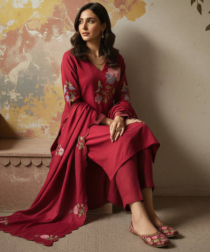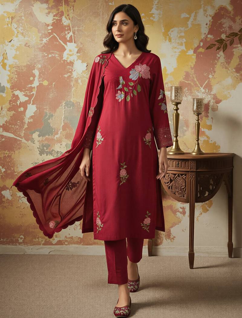 This Salwar Suit Set With Dupatta Is Elevated By A Stunning Red Organza Kurta Set Style Dupatta, Featuring Intricate Embroidery That Adds A Layer Of Ethereal Grace. Whether You Are Dressing Up For A Festive Diwali Kurti Look, An Eid Kurti Celebration, Or A Wedding Event, This Silk Kurta Set For Women Ensures You Remain The Center Of Attention. Far More Sophisticated Than Basic Cotton Kurtis, This Ensemble Functions As A Complete Women's Indian Salwar Kameez Set, Blending The Tradition Of Ethnic Kurtis With The Modern Appeal Of A Kurta Pant Set For Women. Experience The Perfect Fusion Of Style And Heritage With This Premium Party Wear Kurta Set
