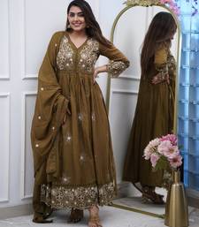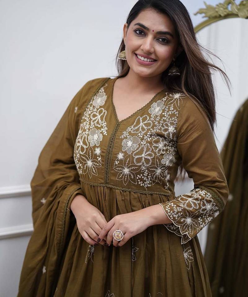 Product Name | Brown Cotton Silk Heavy Embroidered Gown Set With Bottom & Dupatta | |