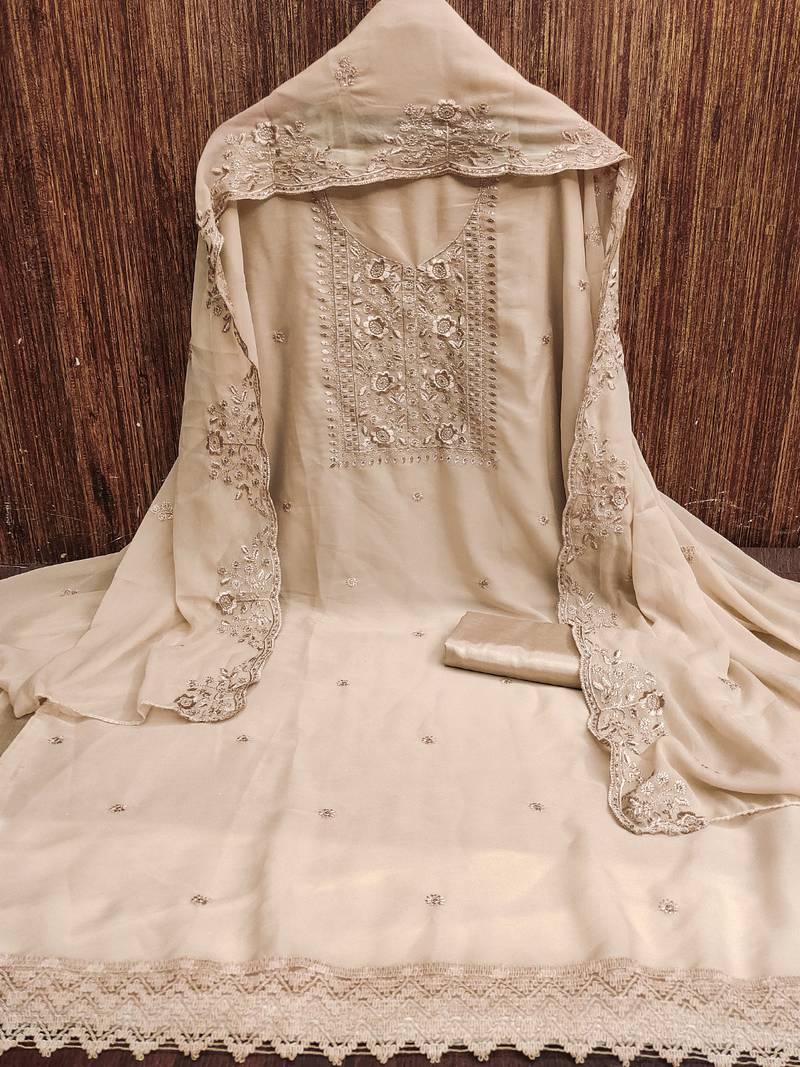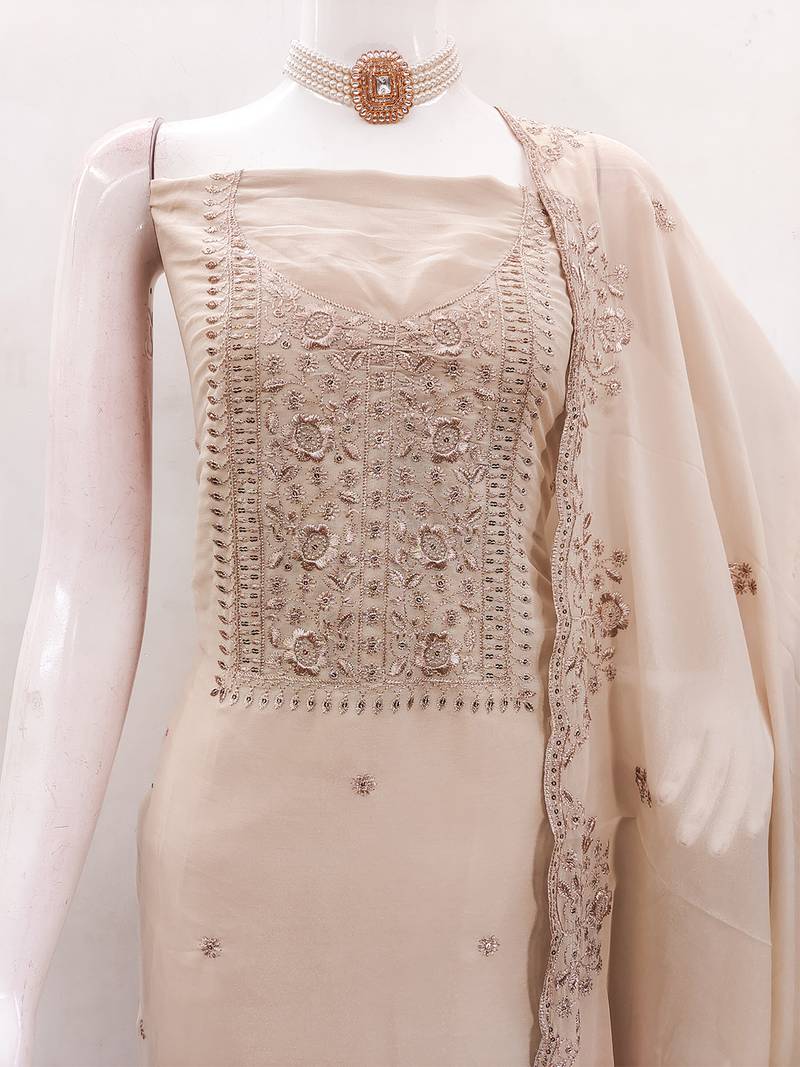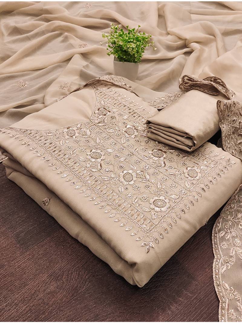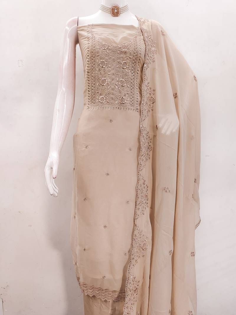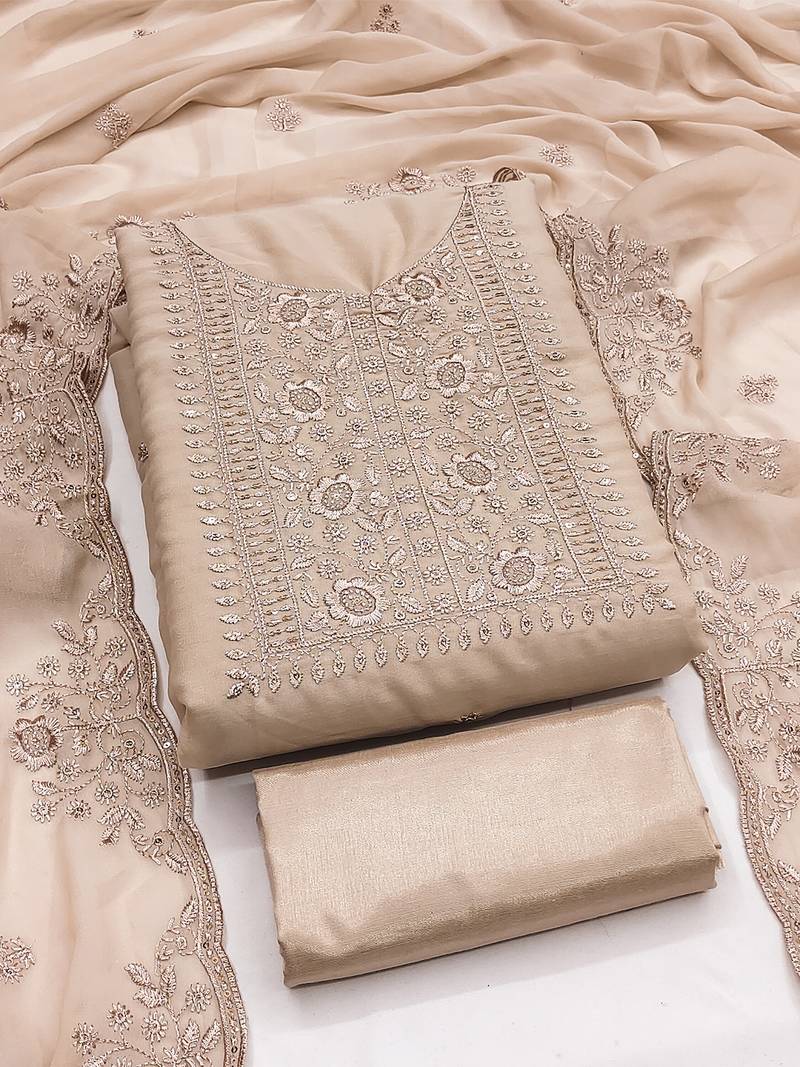 Beige embroidered suit perfect for festive & wedding occasions unstitched