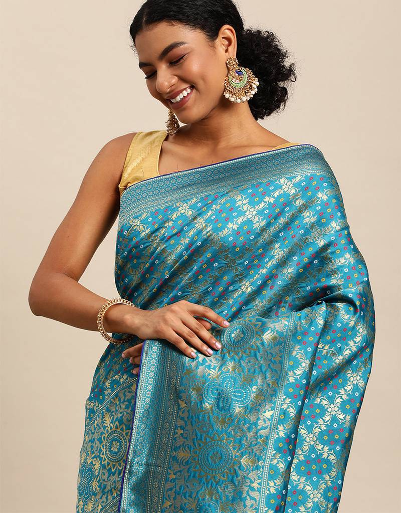| Product Name | Firozi Cotton Silk Blend Banarasi Bandhani Fusion Style Woven | |