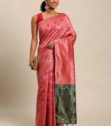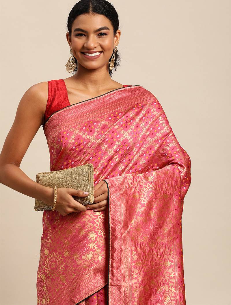Hot pink cotton silk blend banarasi bandhani fusion style woven