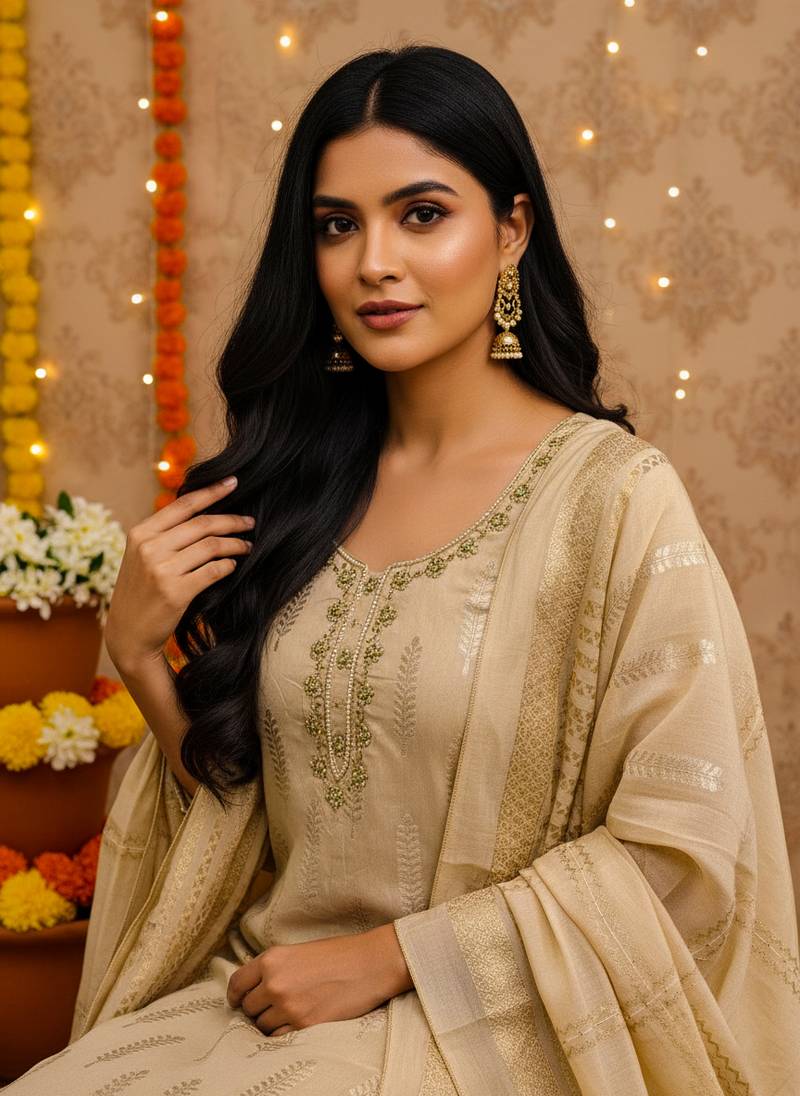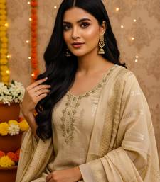 Product Name Women's Beige Silk Blend Banarasi Jacquard Embroidered