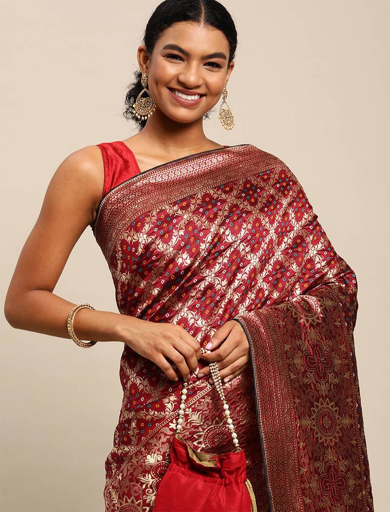 Product Name Maroon Cotton Silk Blend Banarasi Bandhani Fusion Style Woven