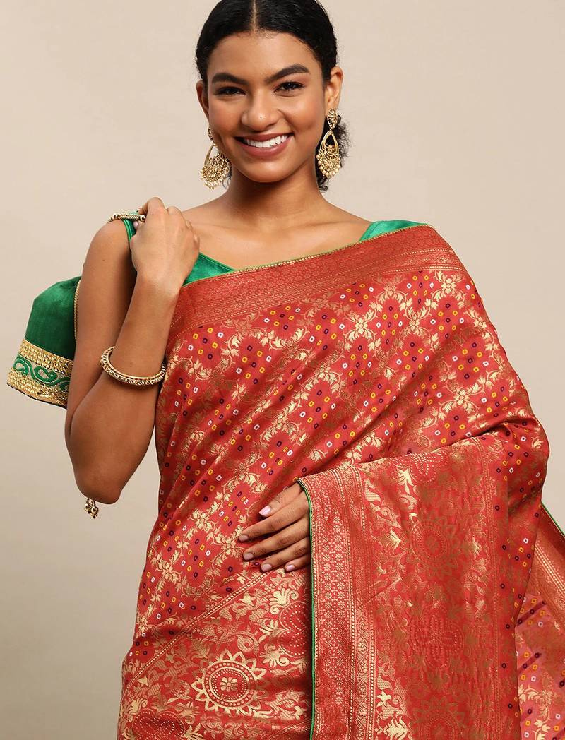Product Name Red Cotton Silk Blend Banarasi Bandhani Fusion Style Woven