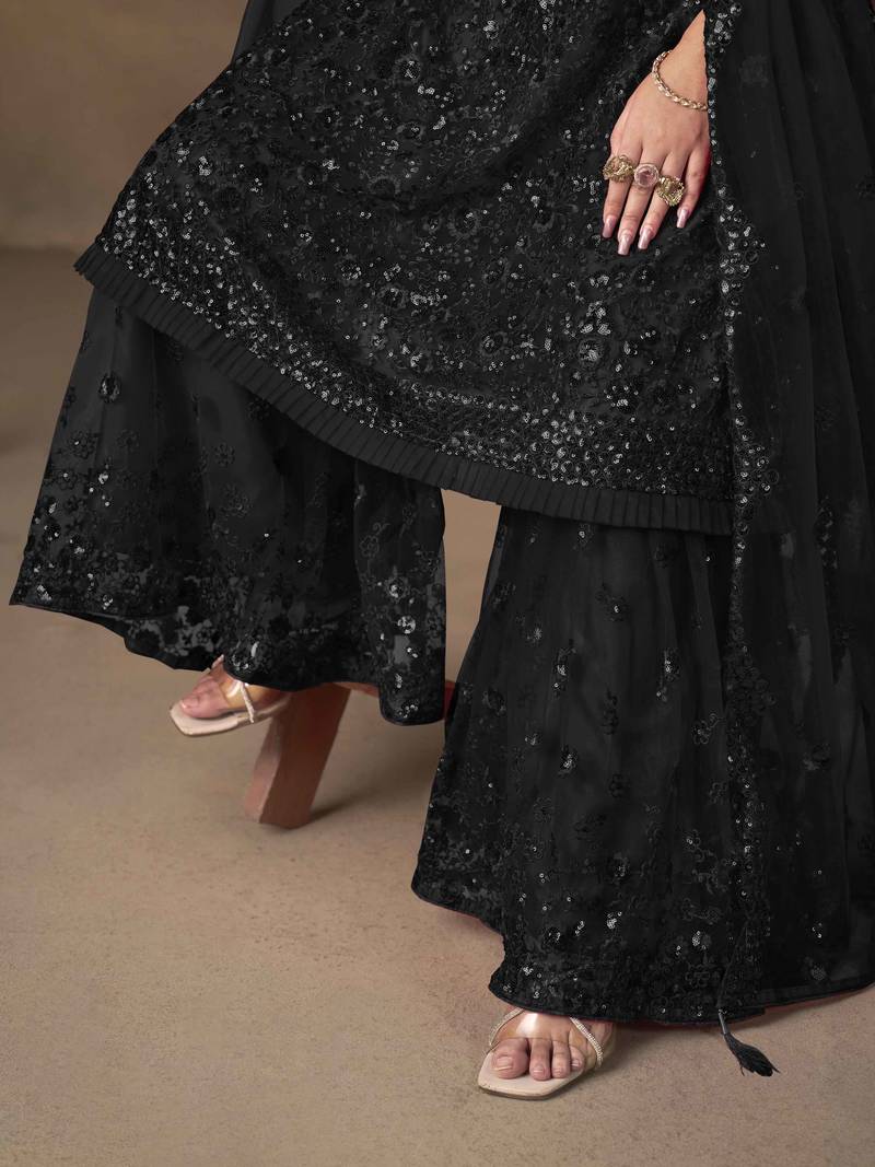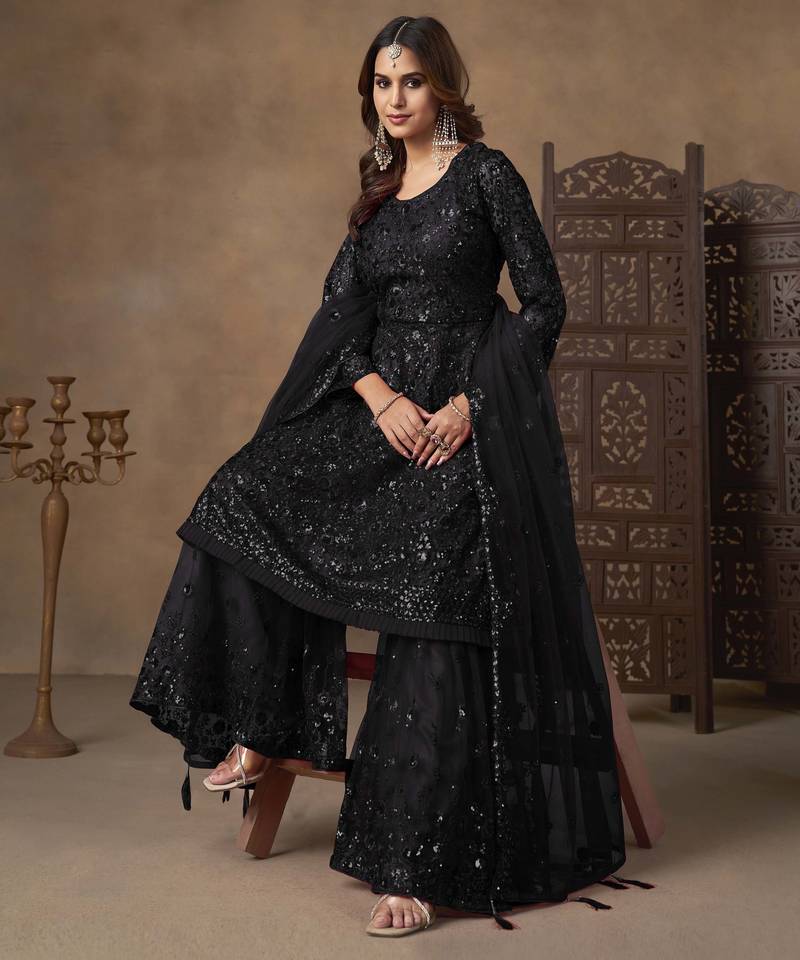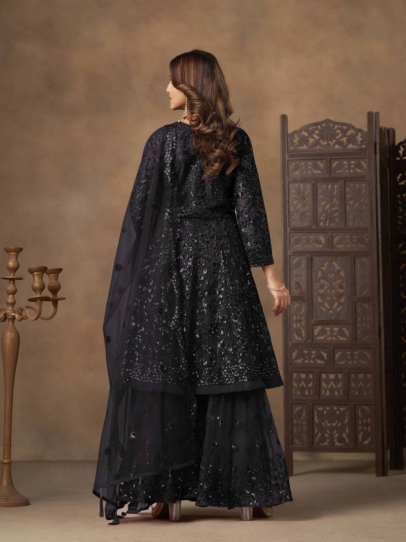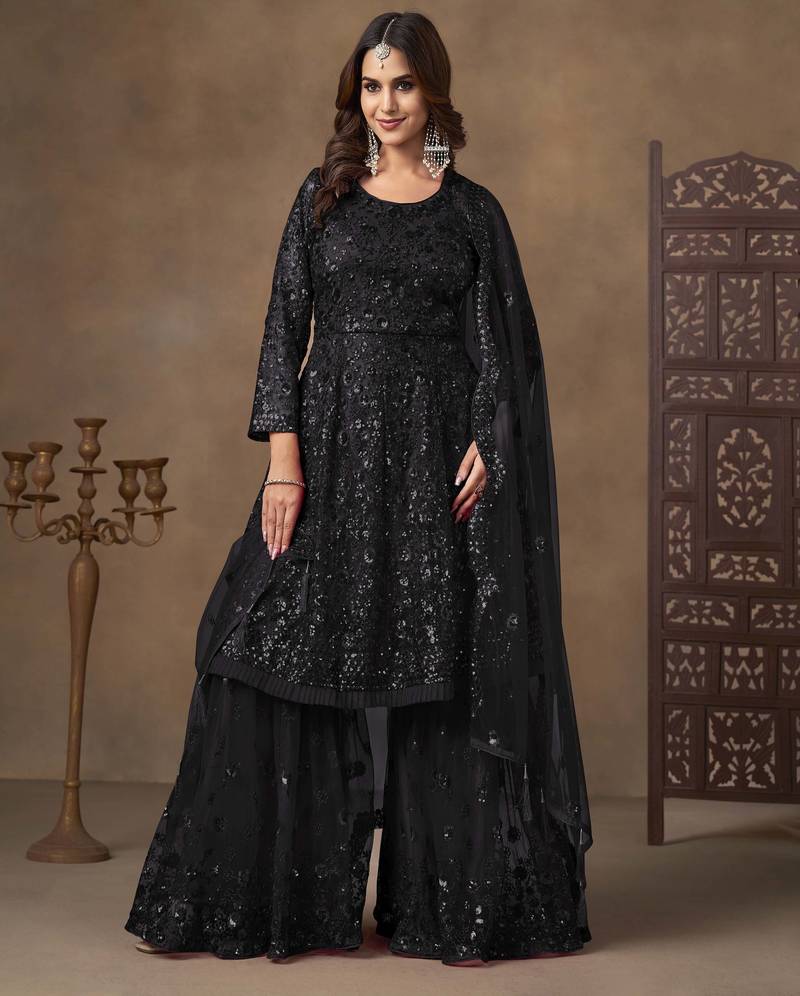 | Product Name | Black Net Heavy Thread Embroidery With Sequins Work Sharara Suit | |