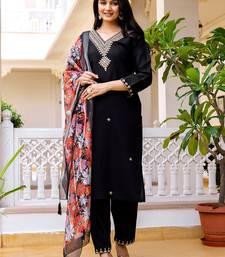 Black viscose chanderi thread embroidered with beads work with printed dupatta kurta pant set