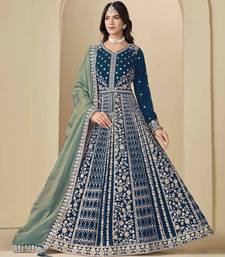 Blue velvet heavy thread embroidery with sequins work salwar kameez semi stitched