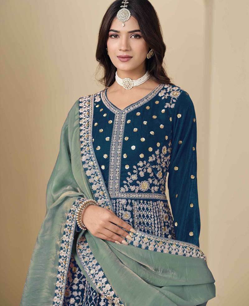 | Product Name | Blue Velvet Heavy Thread Embroidery With Sequins Work Salwar Kameez | |