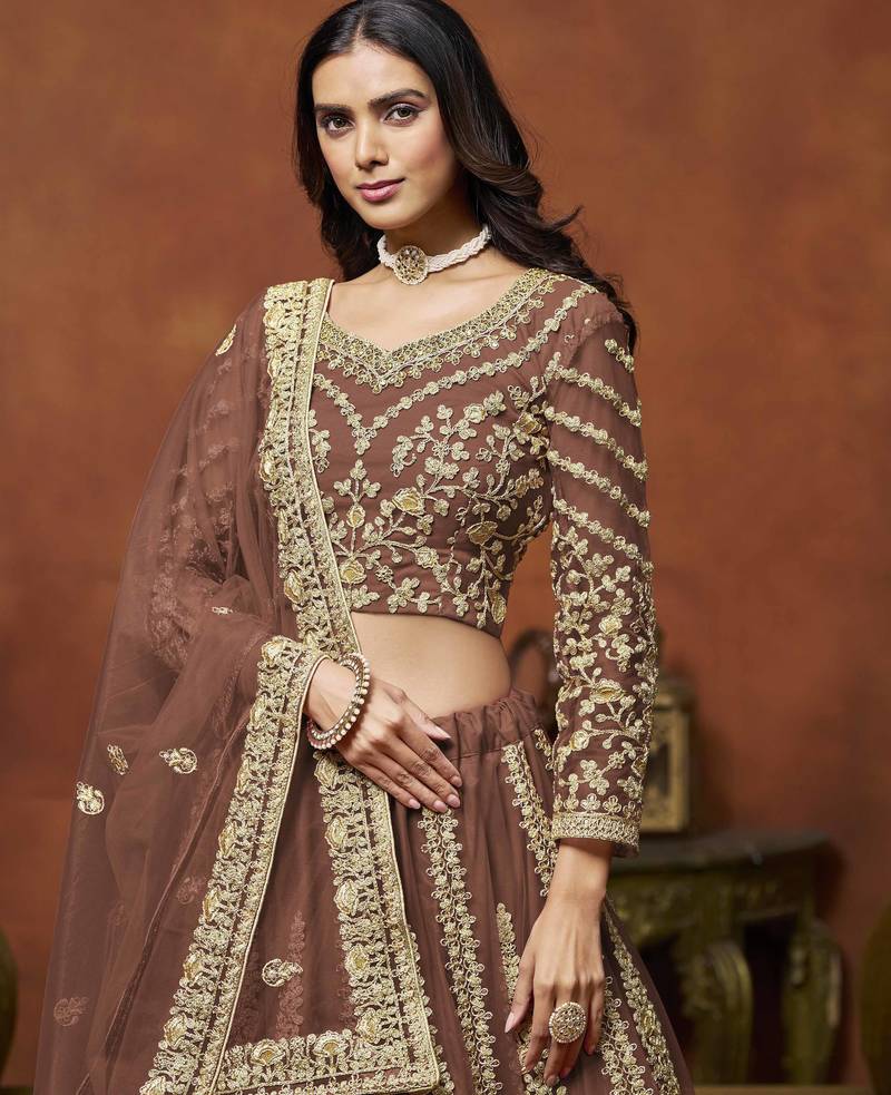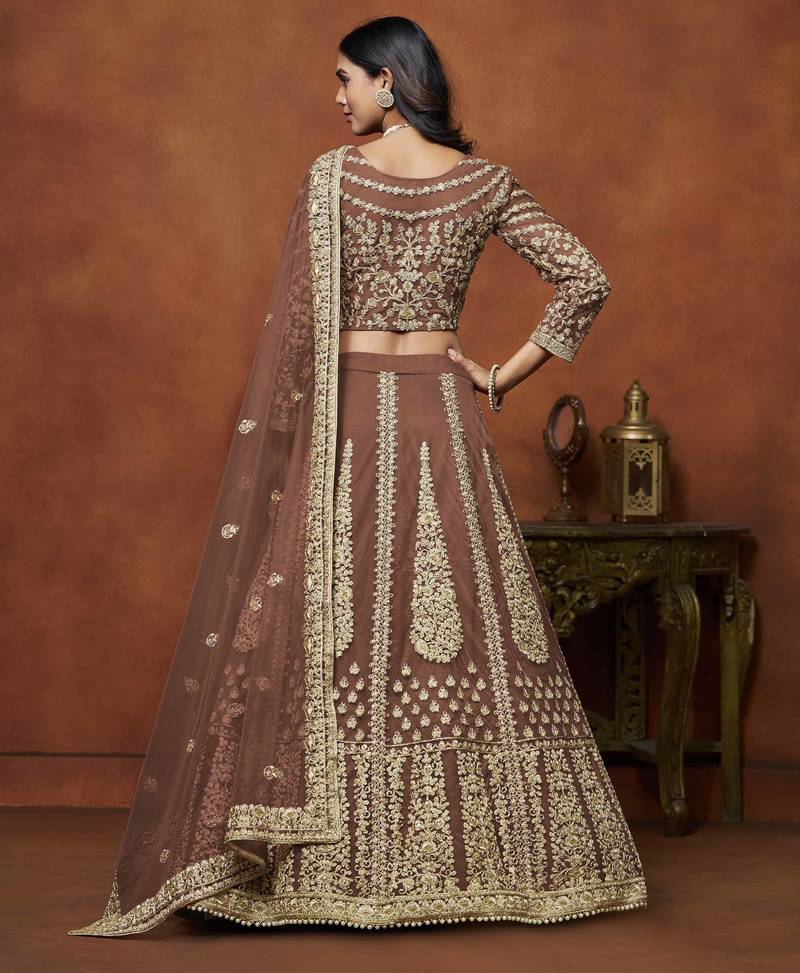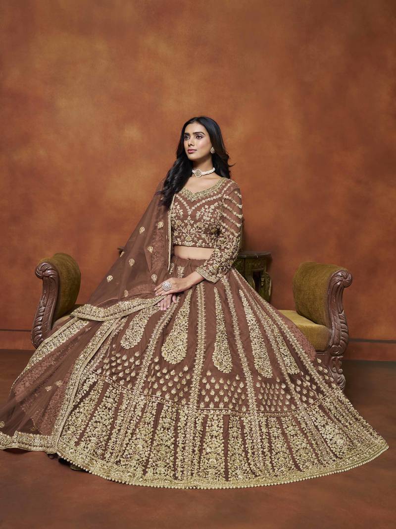 | Product Name | Brown Net Heavy Thread Embroidery With Sequins Work Lehenga Choli Set With Dupatta | |