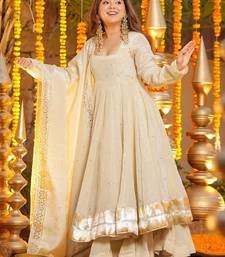 | Product Name | Cream Chinon Heavy Thread Embroidery Work Kurta With Palazzo Set | |