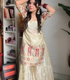 Product Name Cream Chinon Silk Heavy Thread Embroidery Work Kurta With Palazzo Set