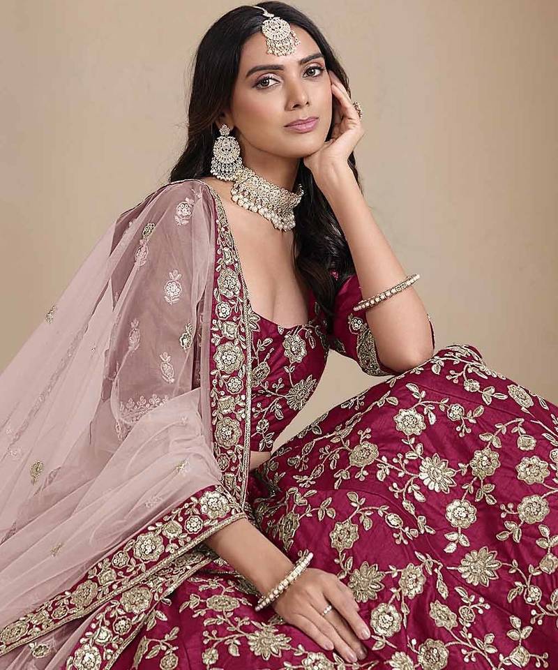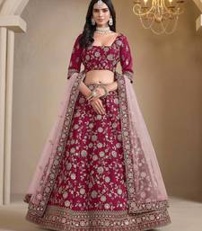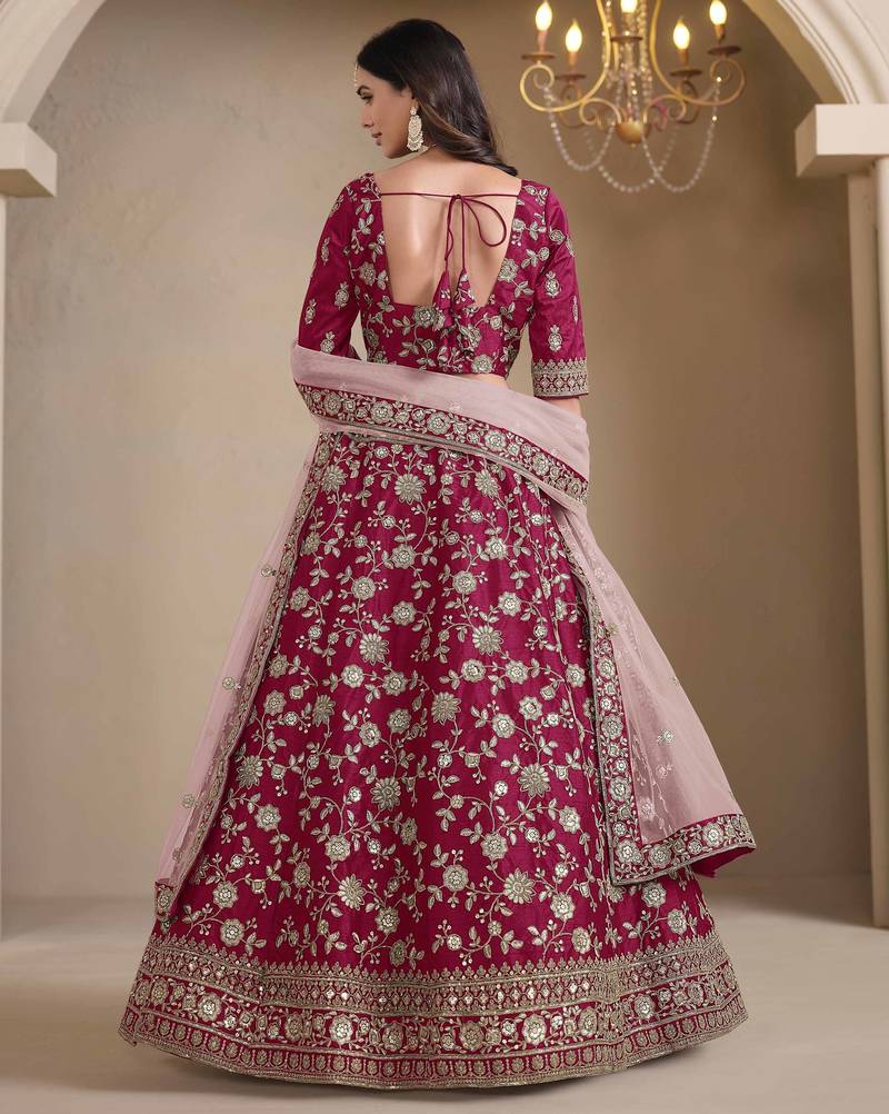 Dark pink art silk heavy thread embroidery with sequins work lehenga choli set with blouse and duppatta