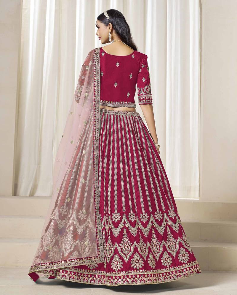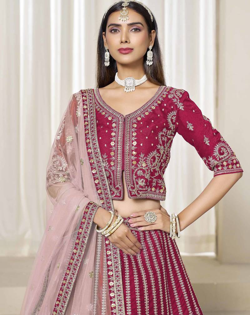 Dark pink art silk heavy thread embroidery with sequins work lehenga choli set with blouse and dupatta