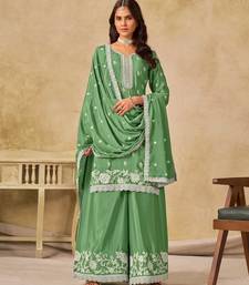 Green chinon heavy thread embroidery work palazzo suit semi stitched