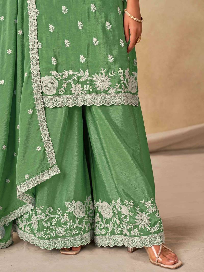 | Product Name | Green Chinon Heavy Thread Embroidery Work Palazzo Suit | |