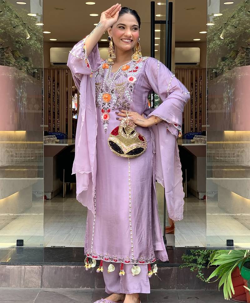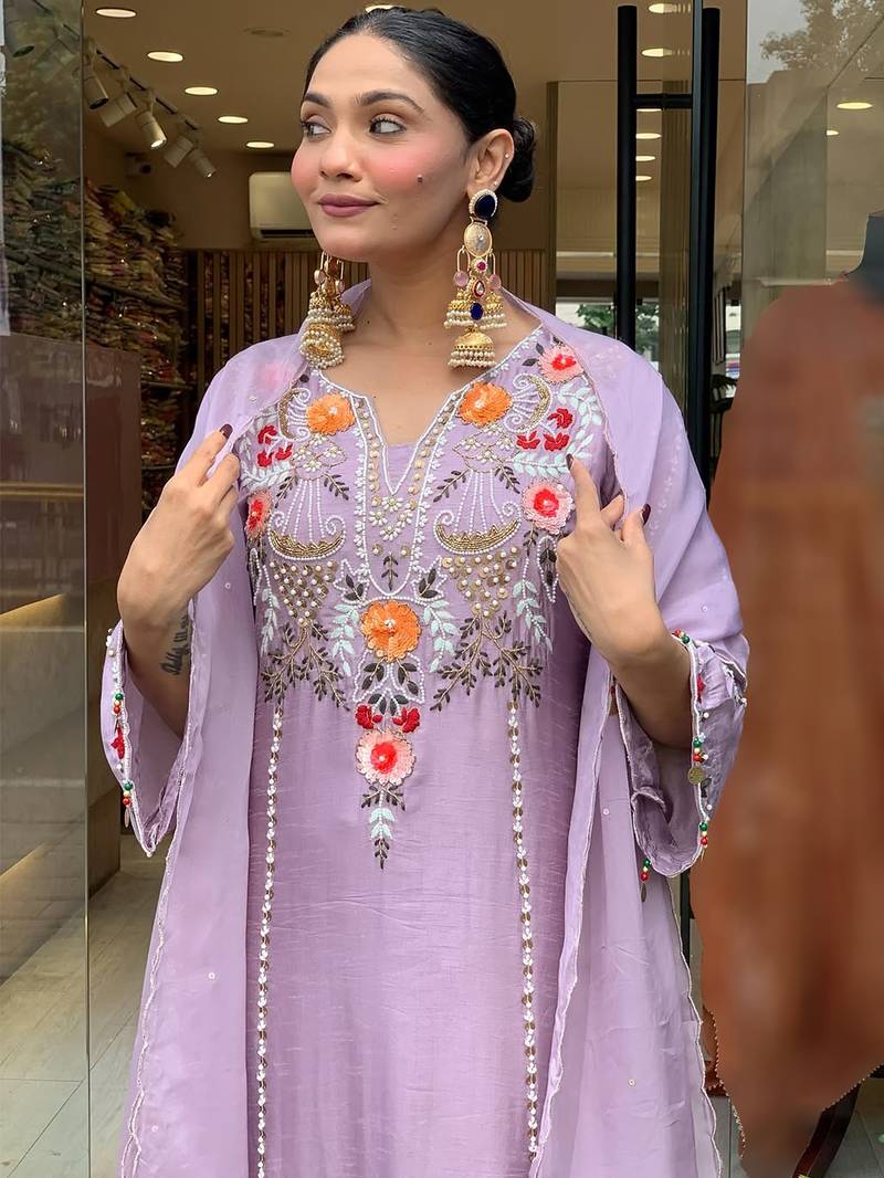 | Product Name | Lavender P.V Chanderi Heavy Thread Embroidery Work Kurta Pant Set | |