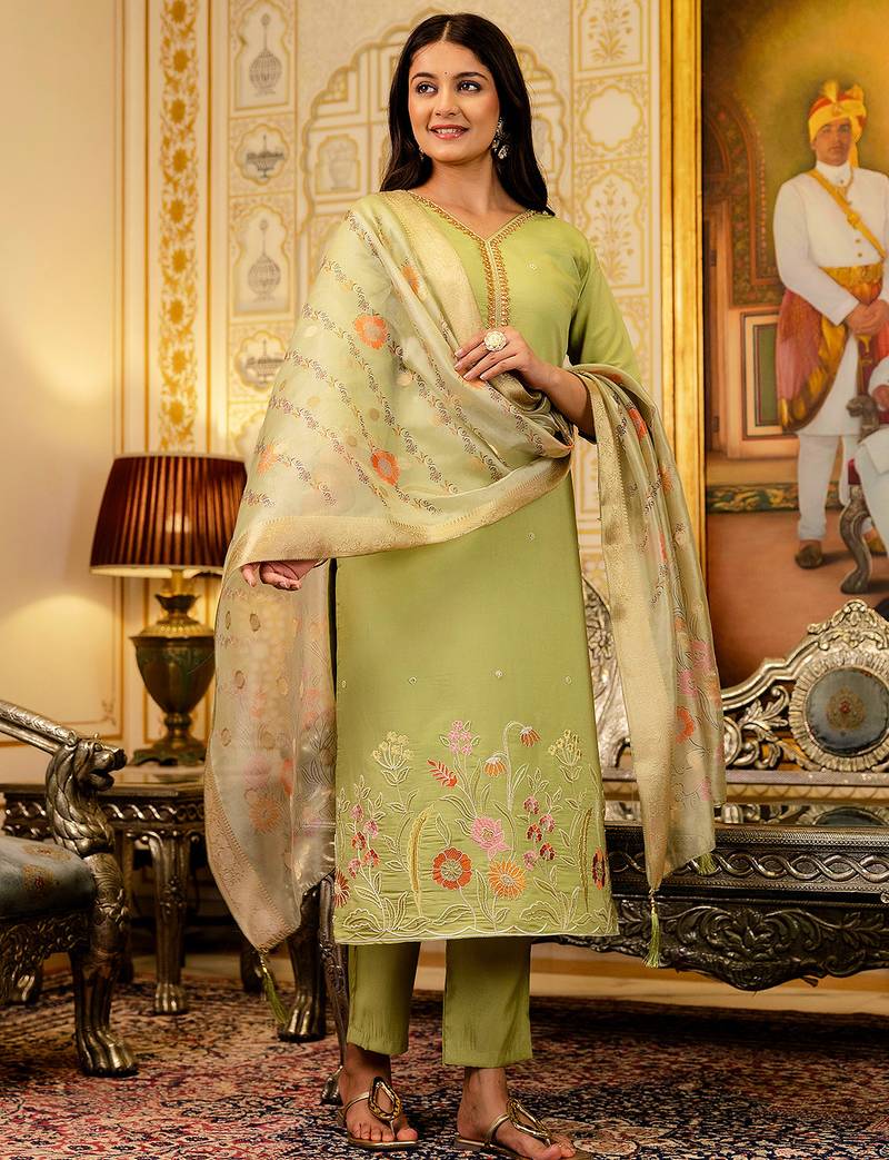 | Product Name | Lemon Viscose Simer Thread Embroidered With Beads Work With Printed Dupatta Kurta Pant Set | |